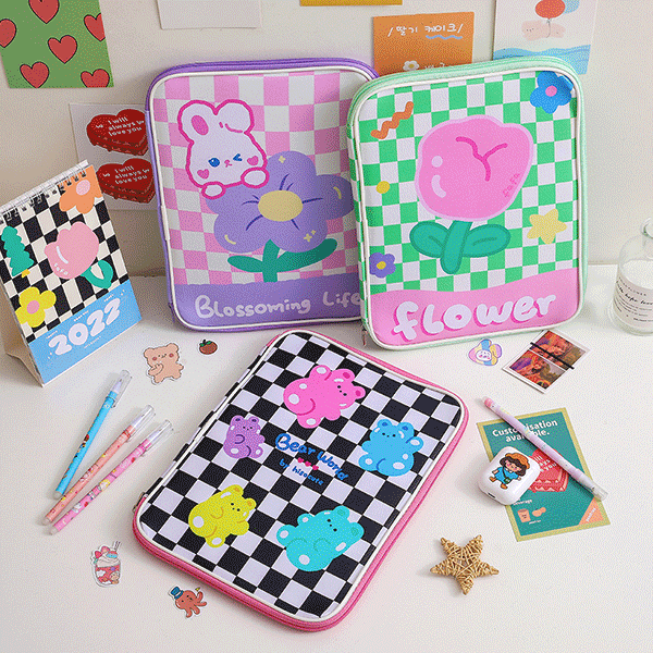키치 아이패드 파우치 갤럭시탭 일러스트 체크파우치 화장품 다꾸 필통 3color