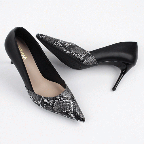 블랙&아프리콧 뱀피 투톤 뾰족코 스틸레토 하이힐 (8cm)