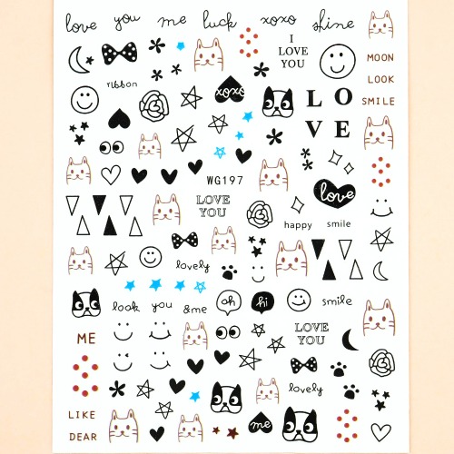 네일 스티커-라이크 디어 고양이 강아지 별 스마일