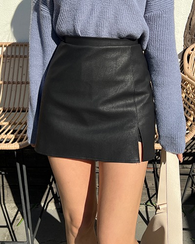 가죽 H라인 미니 스커트 블랙 베이지 브라운