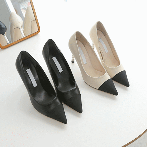 코코블 진주굽 배색 스틸레토 펌프스 (9cm)