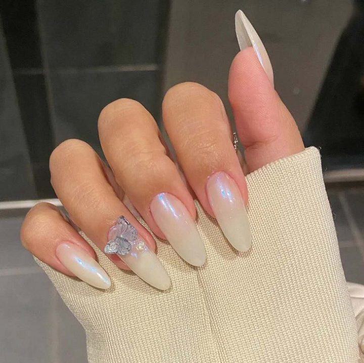 나비 홀로그램 화이트 네일팁 가짜손톱 셀프 네일아트 NAIL-N02