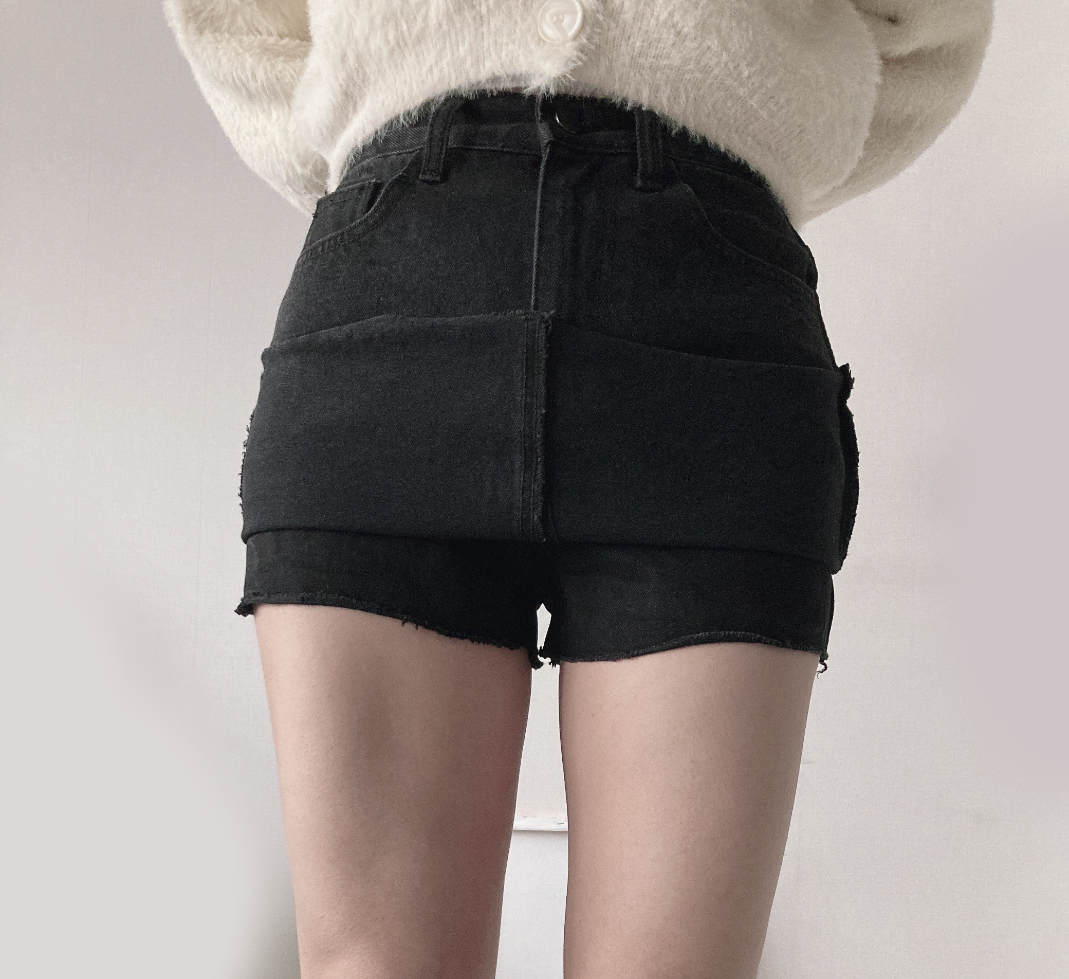 [S/바지안감] H라인 흑청치마 치마바지 미니스커트(빅사이즈,블랙, 짧은치마)