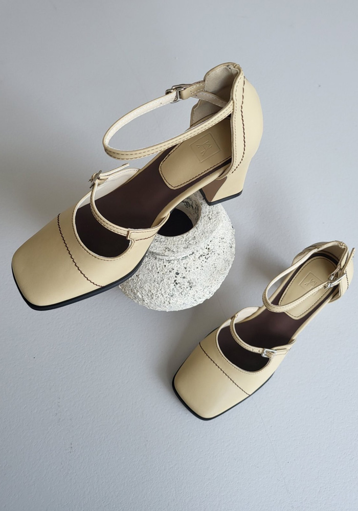 스퀘어토 앵클스트랩 빈티지 미들힐 7cm 2컬러