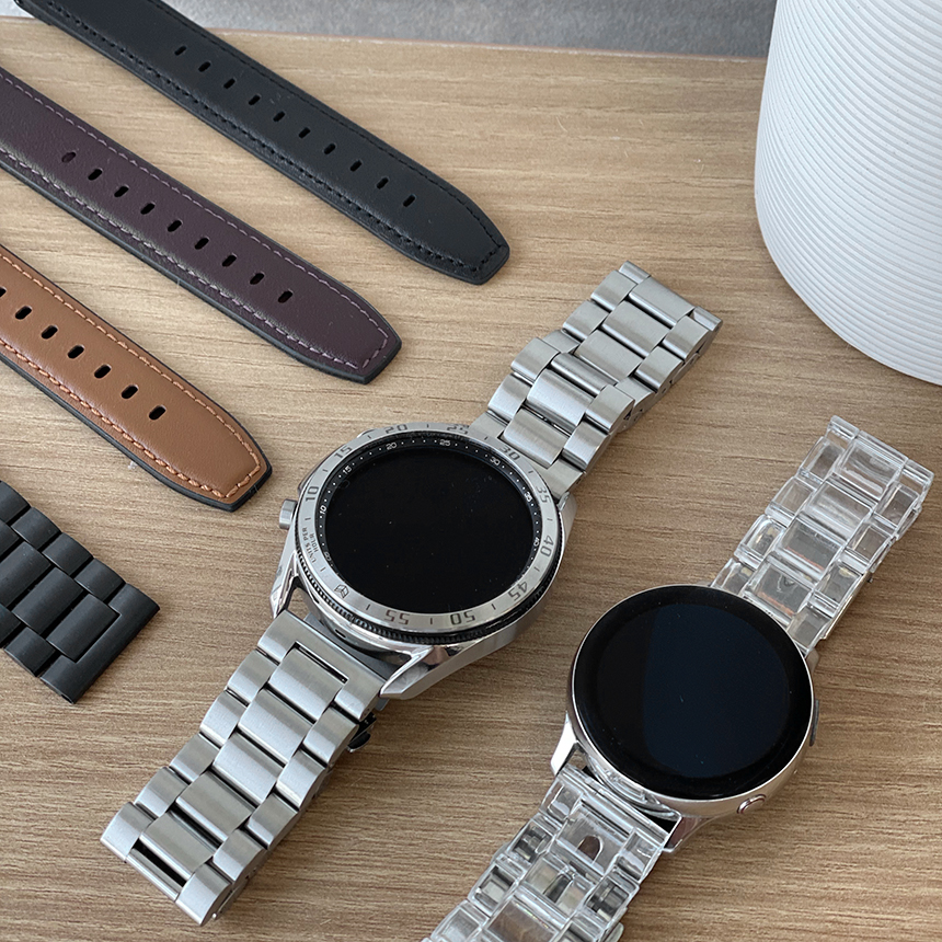지바 갤럭시 워치 5 4 3 프로 클래식 스트랩 액티브 2 베젤링 기어 45mm 41mm 메탈 가죽 투명 시계줄 밴드