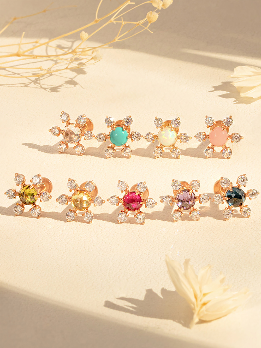 14K 인터널 플라워 로즈컷 큐빅 라블렛 피어싱