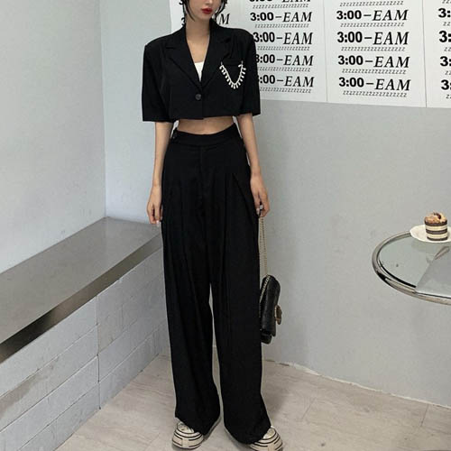(당일출고)진주 포인트 자켓 슬렉스 세트