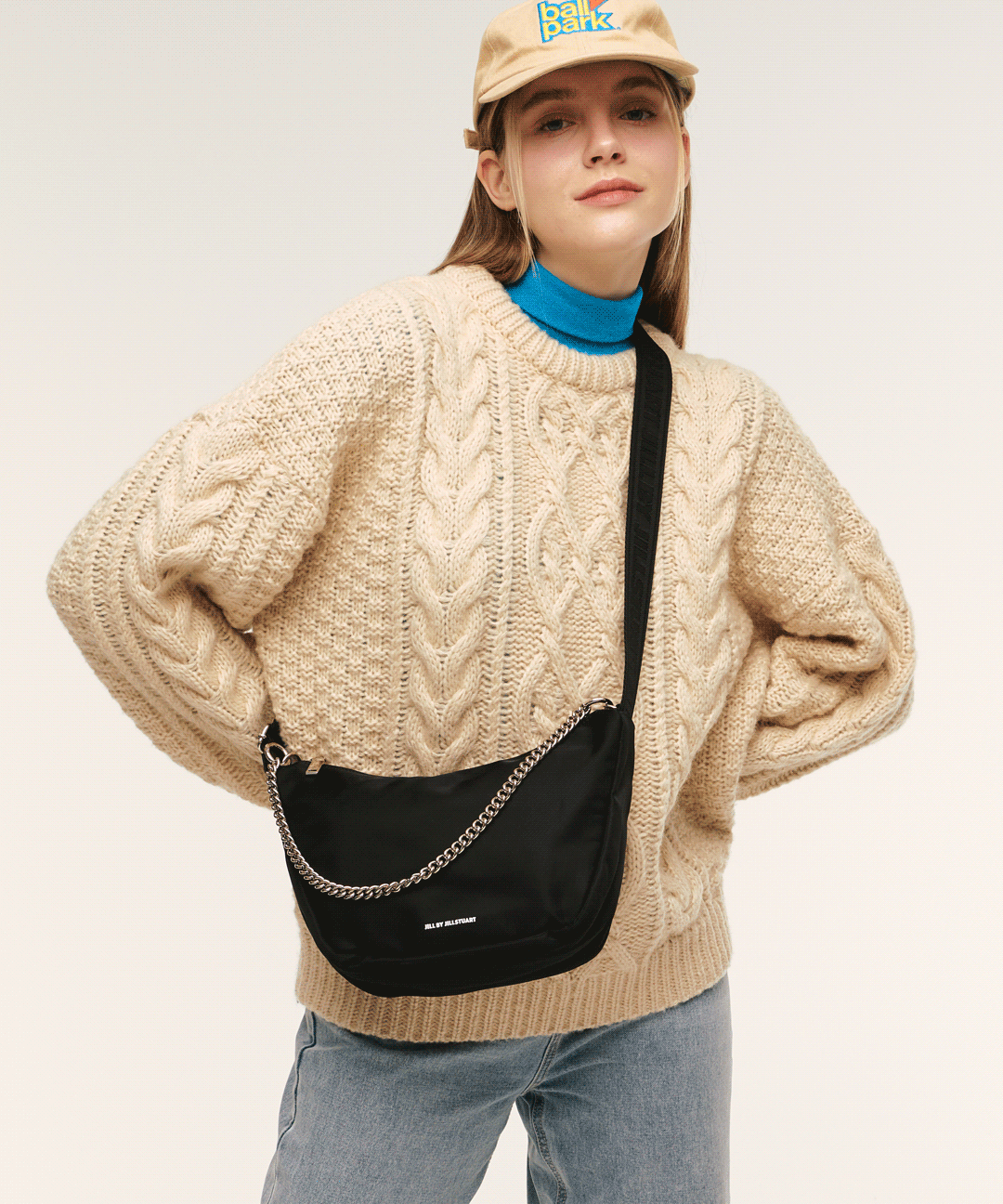 [레브] 블랙 나일론 로고프린트 스몰 체인 호보백
