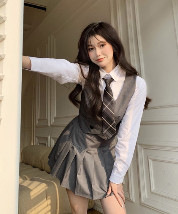 무료배송 [코디세트 베스트+셔츠+스커트] 모던그레이 프레피 스쿨룩셋업 [금요기획 #셋업 #코디룩]