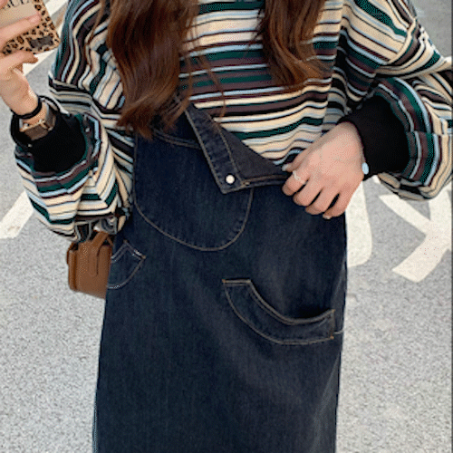 레트로 Y2K 흑청 봄 가을 복고 멜빵 나시 롱원피스