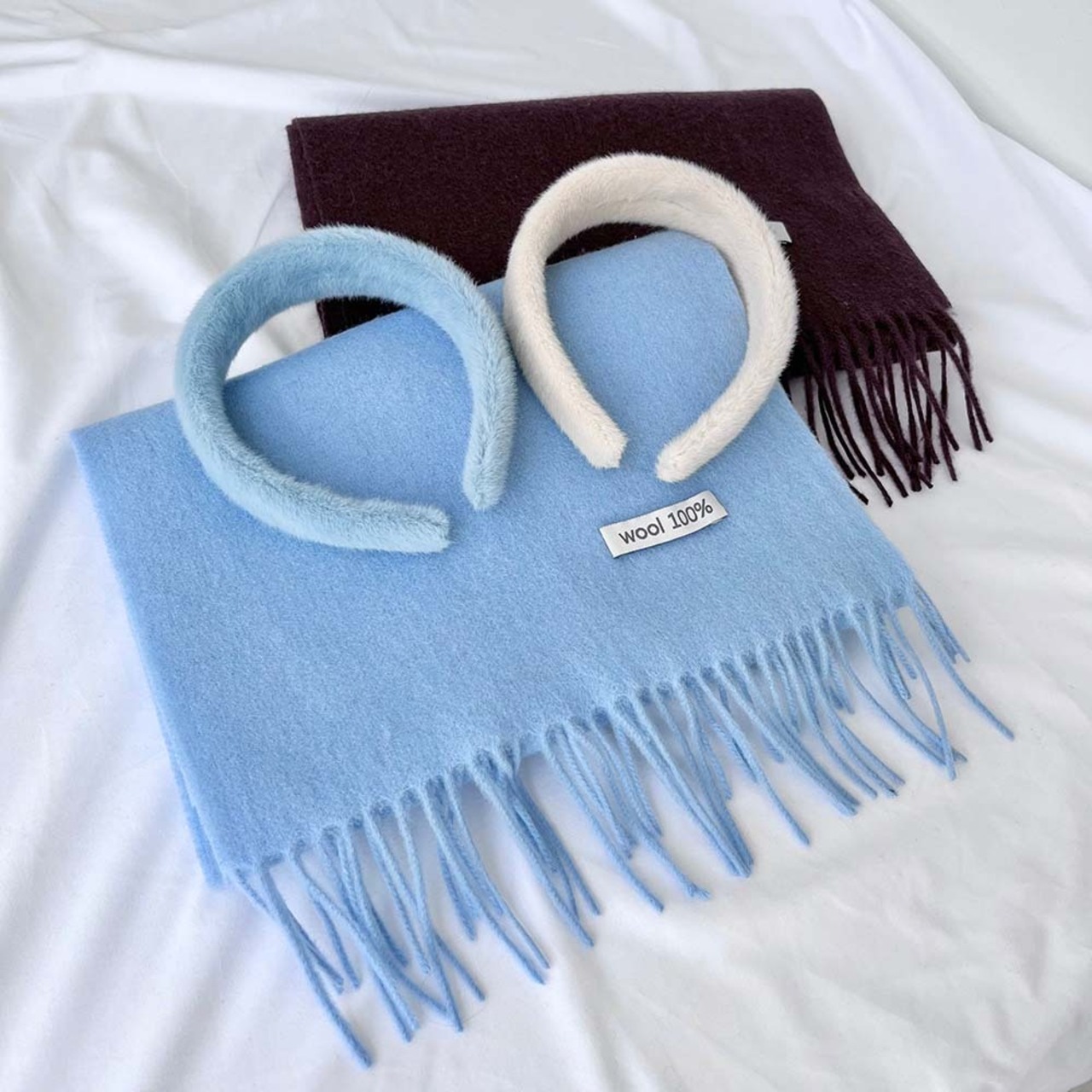 [울100%] 솔리드 컬러 울머플러 목도리 하늘색머플러 소라색목도리