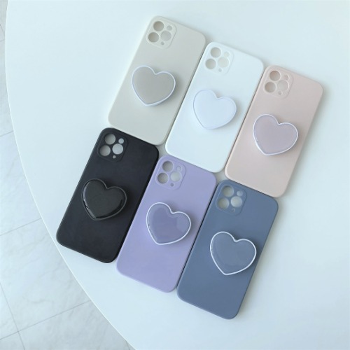 무지 + 하트 그립 스마트톡 핸드폰 카메라풀커버 아이폰7 8 se2 11 12 13 14 15 16 케이스 프로 미니 갤럭시 S22 23 24 노트20 울트라 투명 젤리 실리콘 액정 방탄필름 귀여운 카드 핸드폰케이스 폰케이스 키링 애플워치 버즈 에어팟케이스 선물 커플케이스