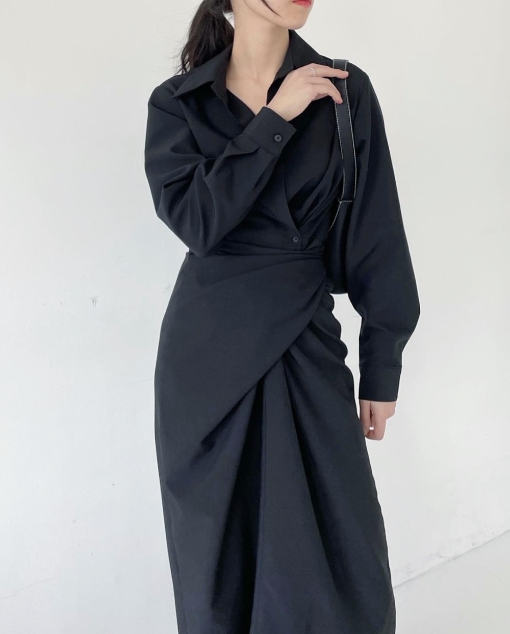 트위스트 뮤트 랩 셔츠 원피스 [2co] *베이지 당일발송