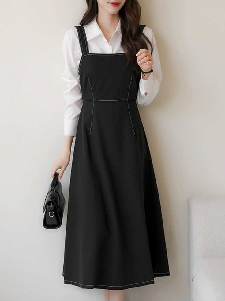 [6천장 돌파✨][무료배송] [44-120] 스팅디 스티치 뷔스티에 롱 원피스 ( 봄-가을-데일리룩-데이트룩-캐주얼룩-캠퍼스룩-러블리룩-하객룩-격식룩-출근룩-빅사이즈-120사이즈-자체제작-사랑스러운-러블리-통통녀 )
