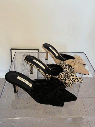 루비 리본 스틸레토 뮬 슬리퍼 힐 (8cm)