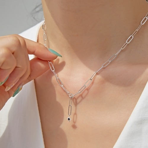 실버925 14k 로즈골드 사각체인 여자 클립 목걸이