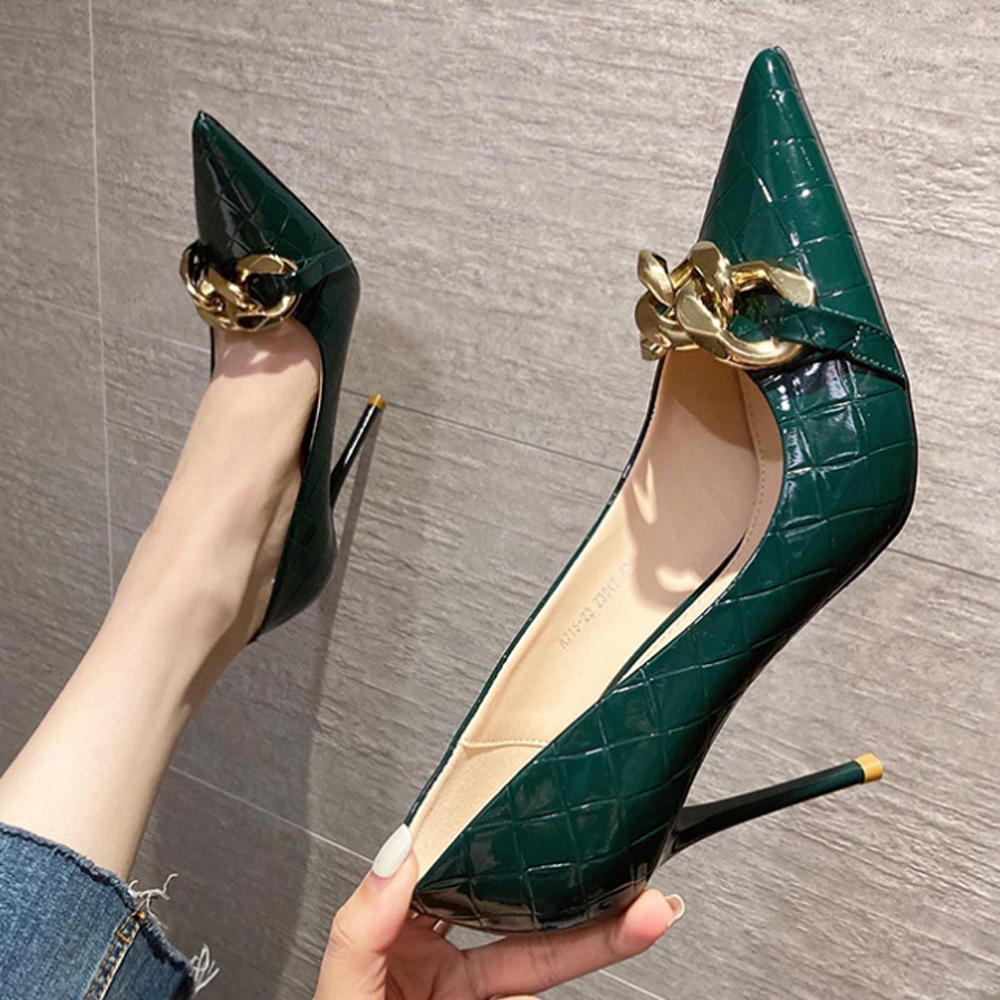 (이벤트230) 센트비 9cm 에나멜 스틸레토 체인 펌프스 하이힐 3color