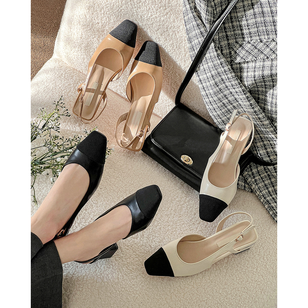 이브 배색 슬링백 (6cm)통굽미들힐 -3color