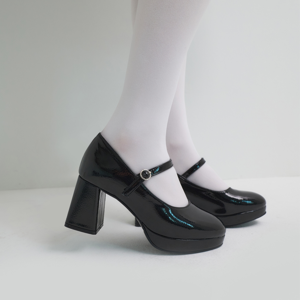 라운드 토 메리제인 블록 힐 펌프스 412211009 (7cm/3colors)