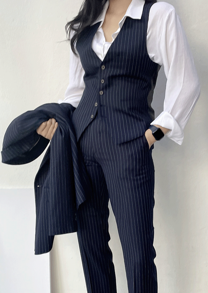 스트라이프 정장 조끼 베스트 ( 빅사이즈 쓰리피스 여성 수트 셋업 )