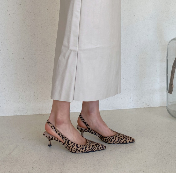 국산 뾰족코 트임 스틸레토 미들굽 슬링백힐 5cm●
