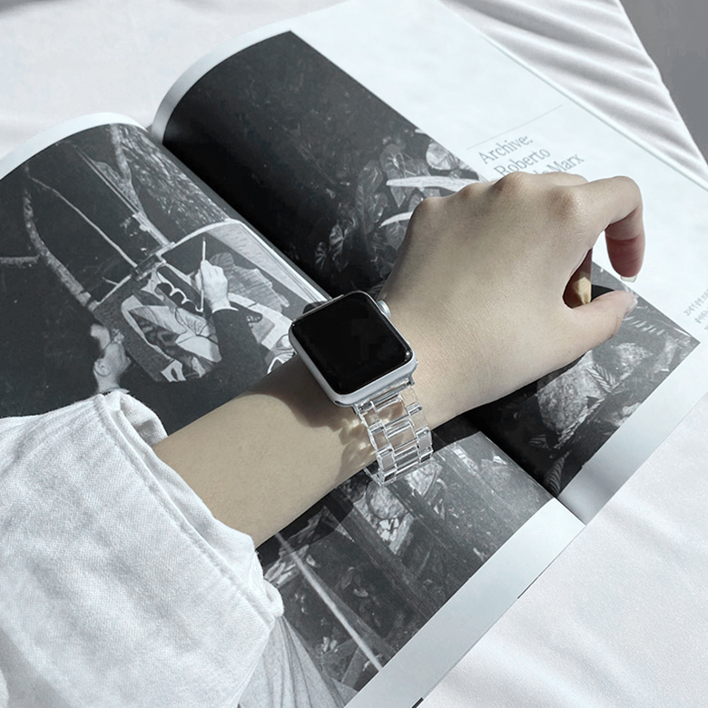 지바 애플워치 스트랩 클리어 애플워치스트랩 3/4/5/6/7/SE 세대 스트랩 버클형 밴드 메탈 메쉬 시계줄 가죽