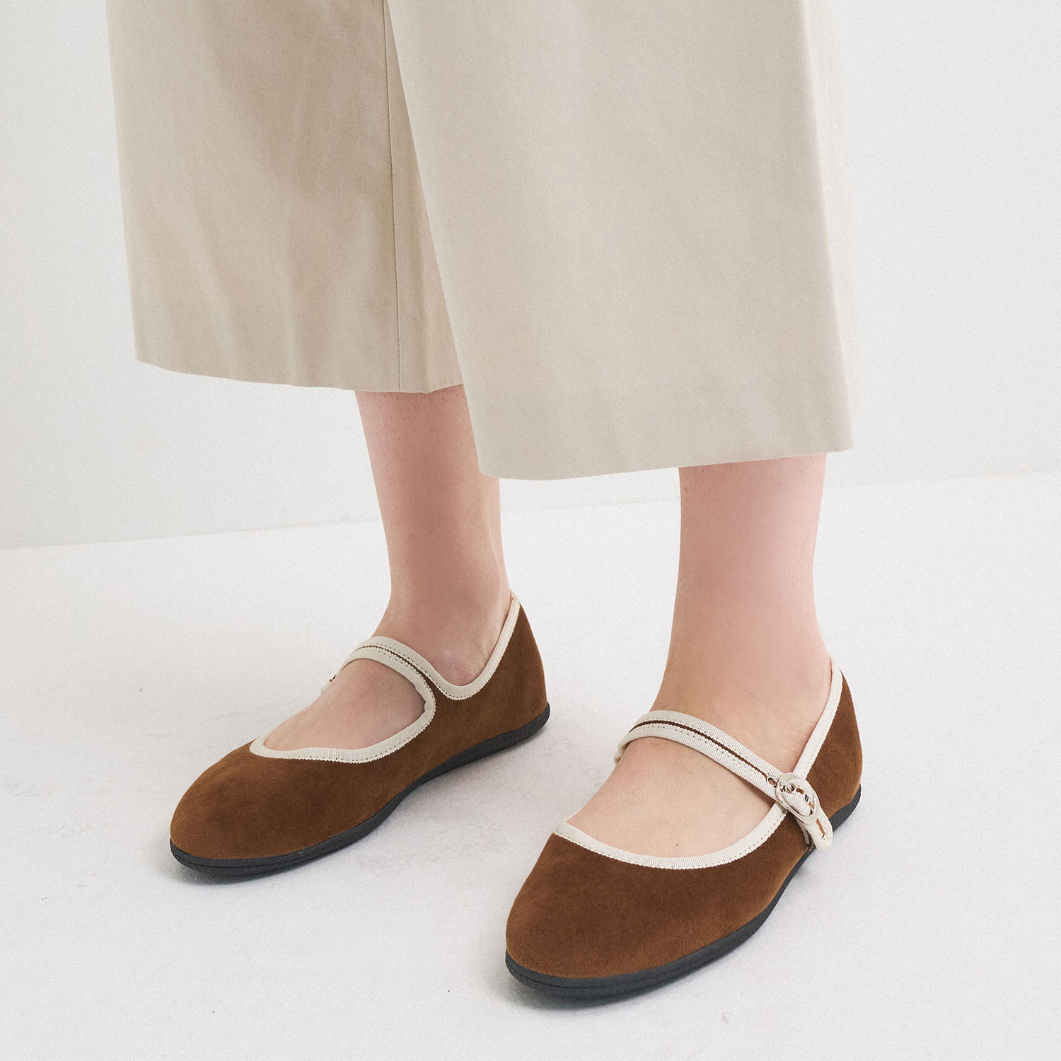 [단독] 라운드 토 배색 스웨이드 메리제인 플랫 (ver.1) 412215003 (1cm/4colors)