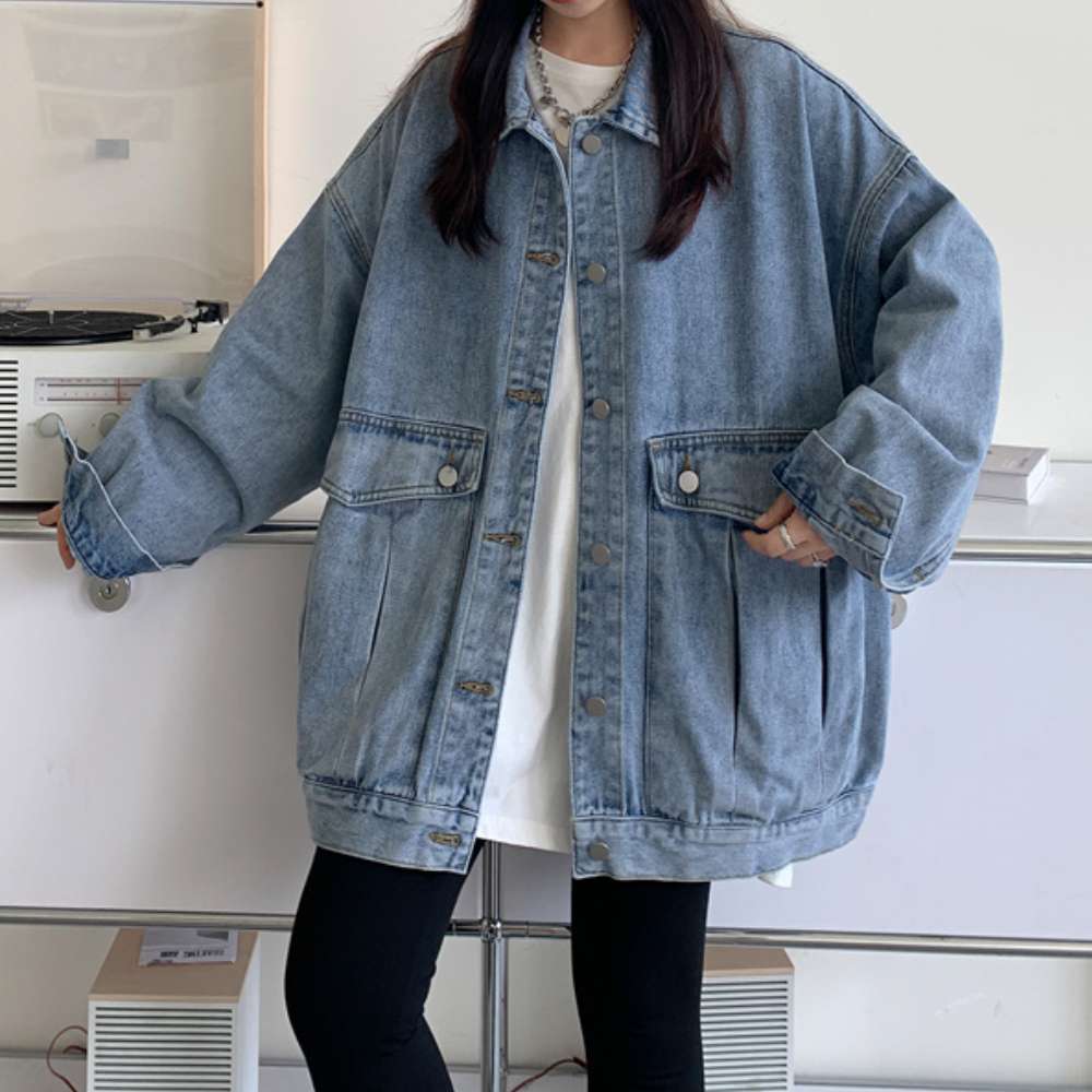 라이트 블루 데님 빅포켓 루즈핏 여성 캐주얼 청자켓 재킷 J20