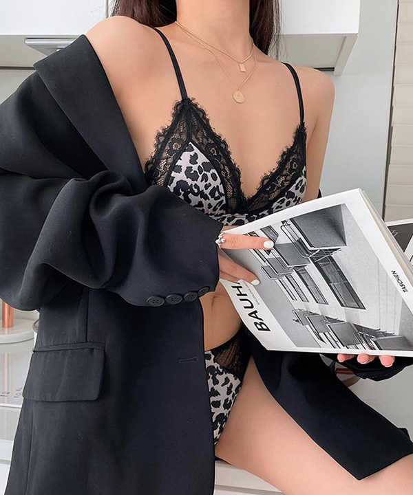 무료배송 [속옷세트] 블랙레이스 호피브라팬티세트 (블랙)