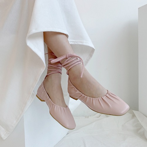 하임 4컬러 셔링 발목 스트랩 끈 플랫슈즈
