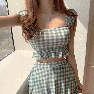 (당일출고) 핑크 블랙 카키초록 체크 날개 스커트 비키니