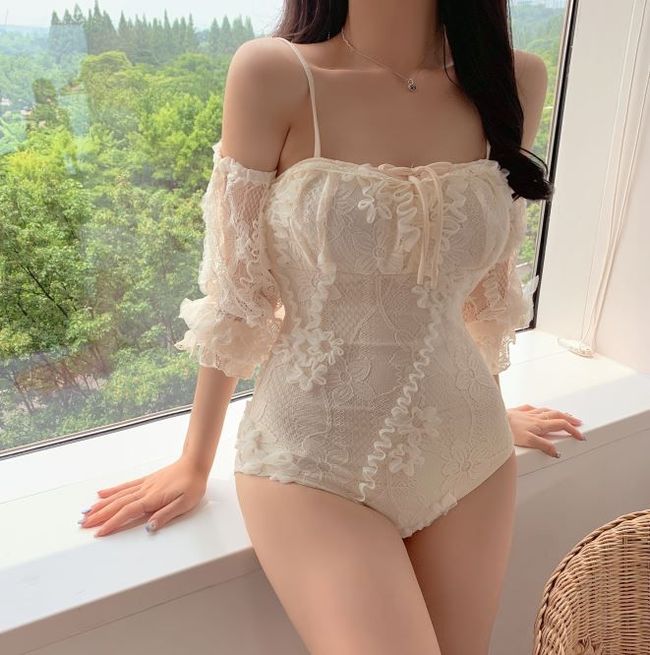 (당일출고) 레이스 오프숄더 팔탈부착 고급 모노키니 수영복 비키니