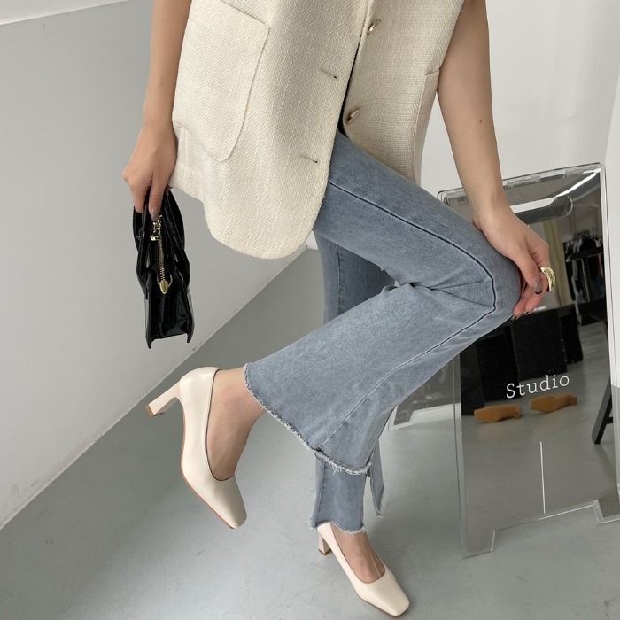 발편한 스퀘어 미들힐 펌프스 승무원구두 청키힐7cm