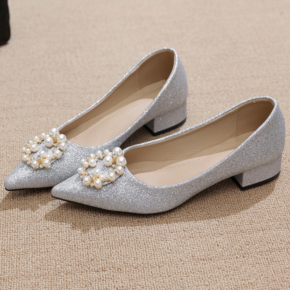 (이벤트240) 데이젠 3cm 글리터 통굽 결혼식 웨딩 진주 구두 4color