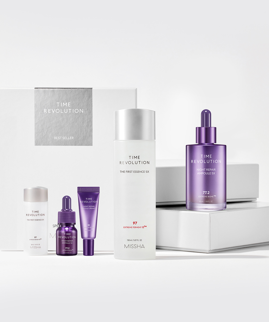 화장품법에 따라 기재, 표시하여야 하는 모든 성분[미샤 타임레볼루션 더퍼스트 에센스 5X] 정제수*, 글리세린*, 프로판다이올*, 1,2-헥산다이올*, 나이아신아마이드, 효모발효추출물*, 비피다발효용해물, 카카오추출물, 흑효모발효물, 쌀추출물, 씨솔트, 아스퍼질러스발효물, 암모늄아크릴로일다이메틸타우레이트/브이피코폴리머, 다이에톡시에틸석시네이트, 에틸헥실글리세린*, 아데노신, 부틸렌글라이콜, 덱스트린, 베타-글루칸, 세라마이드엔피, 하이드로제네이티드레시틴, 잔탄검* [미샤 타임 레볼루션 나이트리페어 앰플 5X] 정제수*, 부틸렌글라이콜*, 글리세린*, 프로판다이올, 베타인, 1,2-헥산다이올*, 나이아신아마이드, 펜틸렌글라이콜, 아이리쉬모스추출물, 사탕수수추출물, 비피다발효용해물*, 카카오추출물, 소듐하이알루로네이트, 베르가모트오일, 센티드제라늄꽃오일, 비피다발효여과물*, 락토바실러스발효물*, 락토바실러스발효용해물*, 락토바실러스/아세로라체리발효물*, 락토바실러스/석류발효추출물*, 락토바실러스/콩발효추출물*, 락토코쿠스발효물*, 락토코쿠스발효용해물*, 류코노스톡/무발효여과물*, 사탕무뿌리추출물, 양배추추출물, 당근추출물, 가지열매추출물, 로우스위트블루베리추출물, 해바라기씨오일, 라벤더오일, 화이트루핀씨추출물, 아스퍼질러스발효물, 금사연둥지추출물, 오렌지껍질오일, 캐모마일꽃오일, 단향오일, 다이에톡시에틸석시네이트, 스쿠알란, 판테놀, 폴리글리세릴-10라우레이트, 하이드로제네이티드레시틴*, 트로메타민, 폴리쿼터늄-51, 에틸헥실글리세린, 아데노신, 덱스트린, 토코페롤, 세라마이드엔피*, 콜레스테롤*, 카보머, 잔탄검, 다이소듐이디티에이, 리모넨, 리날룰 [미샤 타임 레볼루션 나이트리페어 앰플 크림 5X] 정제수*, 글리세린*, 메틸프로판다이올, 사이클로헥사실록세인, 하이드로제네이티드폴리아이소부텐, 카프릴릭/카프릭트라이글리세라이드, 트라이에틸헥사노인, 나이아신아마이드, 세테아릴알코올, 다이메티콘올, 1,2-헥산다이올*, 참마뿌리추출물, 무화과추출물, 병풀추출물, 황벽나무껍질추출물, 락토바실러스/ 석류발효추출물*, 락토바실러스/콩발효추출물*, 모나스커스추출물, 쌀추출물*, 가지열매추출물*, 당근추출물*, 로우스위트블루베리추출물*, 사탕무뿌리추출물*, 양배추추출물*, 베르가모트오일, 센티드제라늄꽃오일, 하이드로제네이티드레시틴, 녹차씨오일, 동백나무씨오일, 아르간커넬오일, 올리브오일, 퀸즈랜드넛오일, 해바라기씨오일, 호호바씨오일, 라벤더오일, 오렌지껍질오일, 캐모마일꽃오일, 단향오일, 스테아릴알코올, 트레할로오스, 비즈왁스, 세틸알코올, 세테아릴글루코사이드, 비닐다이메티콘, 폴리글리세릴-2스테아레이트, 세테아릴올리베이트, 글리세릴스테아레이트, 팔미틱애씨드, 솔비탄올리베이트, 스테아릭애씨드, 암모늄아크릴로일다이메틸타우레이트/브이피코폴리머, 글라이코실트레할로오스, 부틸렌글라이콜*, 에탄올, 비피다발효용해물*, 잔탄검, 하이드로제네이티드스타치하이드롤리세이트, 아데노신, 라피노오스, 글리세릴폴리메타크릴레이트, 덱스트린, 카카오껍질가루, 다이소듐이디티에이, 레시틴, 글루코오스, 폴리쿼터늄-51, 세라마이드엔피, 락토바실러스발효물*, 미리스틱애씨드, 락토바실러스/아세로라체리발효물*, 락토바실러스발효용해물*, 락토코쿠스발효물*, 락토코쿠스발효용해물*, 류코노스톡/무발효여과물*, 비피다발효여과물*, 수크로오스다이스테아레이트, 다이프로필렌글라이콜, 바이오사카라이드검-1, 효모발효물*, 토코페롤, 바실러스발효물*, 피토스테릴/이소스테아릴/세틸/스테아릴/베헤닐다이머디리놀리에이트, 하이드록시아세토페논, 에틸헥실글리세린, 리모넨, 시트로넬올, 제라니올, 리날룰