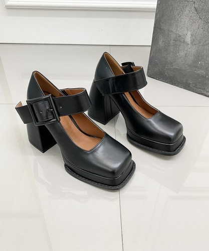 [하이퀄리티] 레트로 스퀘어 가보시 통굽 버클 스트랩 메리제인 펌프스힐 10cm 킬힐