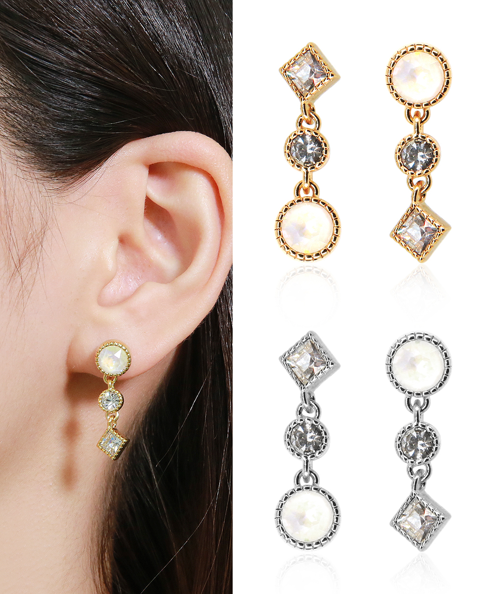 루이뱅 [ Swarov cubic ] 스왈 큐빅 언발란스 드롭 귀걸이