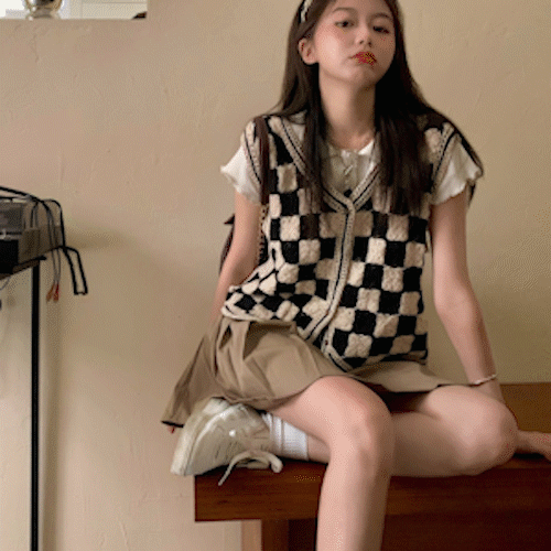 [봄자켓/투피스세트]펀칭 그물 나시 체크 조끼 베스트 플리츠 주름 미니스커트 숏자켓 치마 하객룩 나들이 셋업