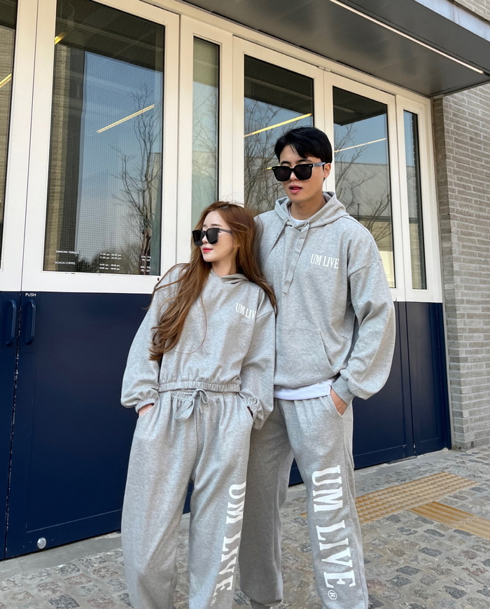[자체제작/SET가격]2size 남녀공용 트레이닝 셋업 크롭 오버핏 루즈핏 세트 츄리닝셋업 커플 후드티 조거팬츠 커플룩