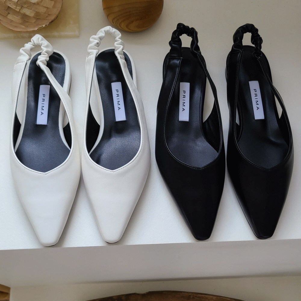 스틸레토 백밴딩 플랫슬링백 로우힐1cm (화이트,블랙 / 225-250) [국내제작]