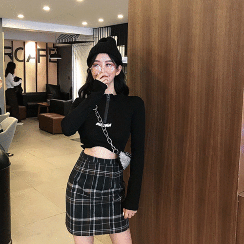 810 카오카 반지퍼 크롭 긴팔티 ys 숏 집업 티셔츠