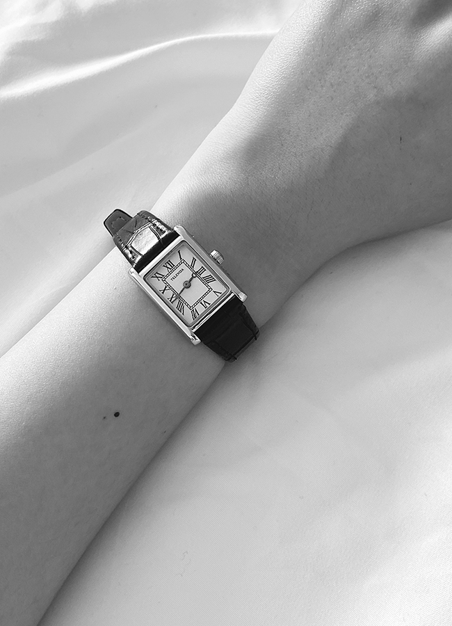 윌스 실버 스퀘어 레더 워치