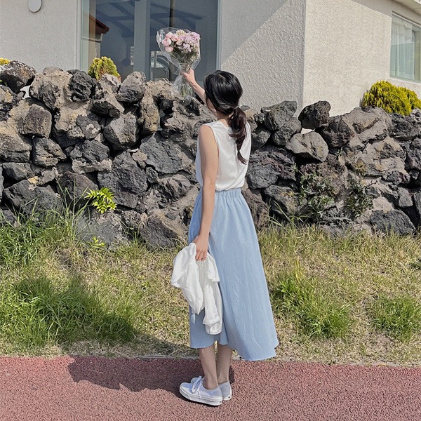 [MADE] 로망 뒷밴딩 플레어롱스커트(44~110) (빅사이즈스커트-롱치마-데일리스커트-플레어롱치마-캐주얼룩-내추럴룩-체형커버-마실룩-가을하객룩)
