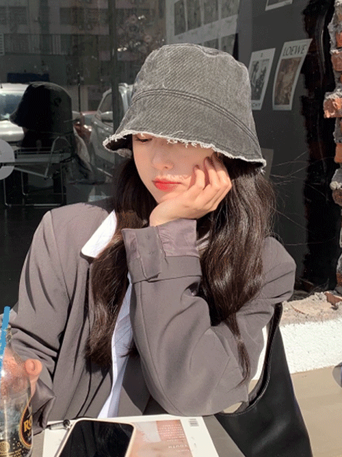 데님 코튼 수술 벙거지 버킷햇 모자 (자외선차단/휴양지) H#YW036