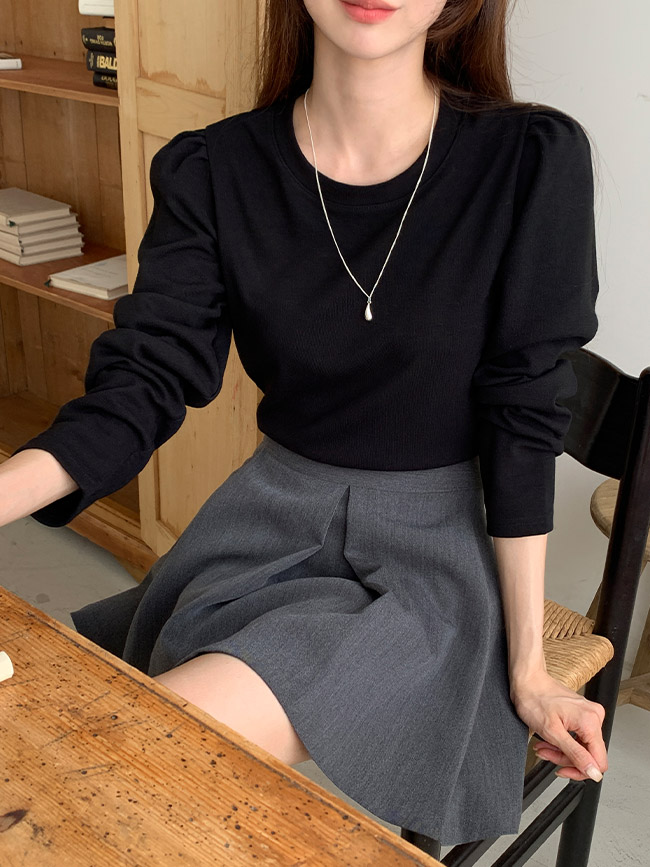 (MADE/하객 블라우스같은티셔츠/긴팔티셔츠) 라운드넥 퍼프 긴팔 티셔츠 데일리룩 퍼프소매티셔츠 페미닌룩 꾸안꾸룩 오피스룩 ts2959