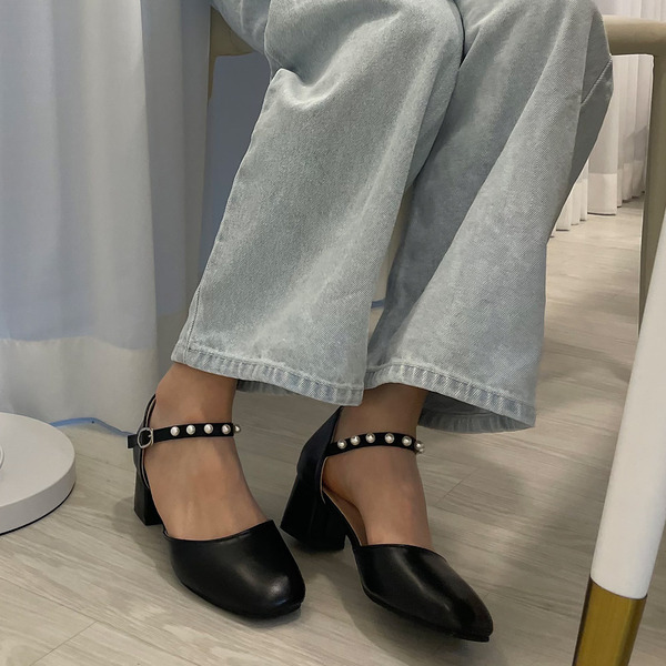 여성 진주 스트랩 미들굽 펌프스 sn276