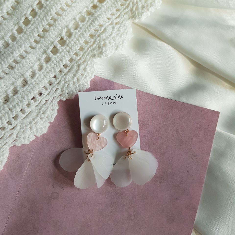 [안영미착용] 퐁실꽃잎하트귀걸이