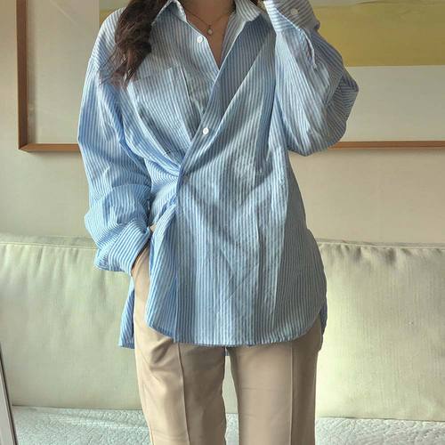 소프트톤 루즈핏 스트라이프 투웨이 언발 랩 셔츠 남방 2 color