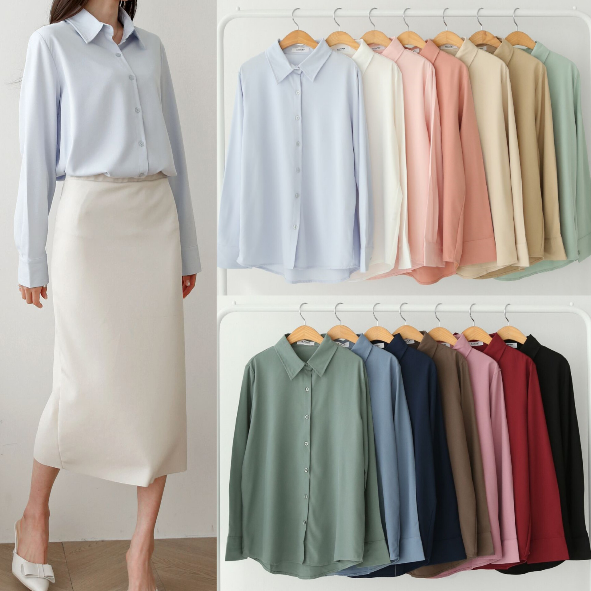 [당일발송] 구김없는 링클프리 셔츠 블라우스 오피스 정장 화이트 블랙 남방