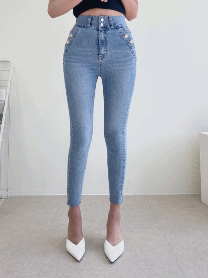 포켓 포인트 하이웨스트 데님 화이트 스키니 4color